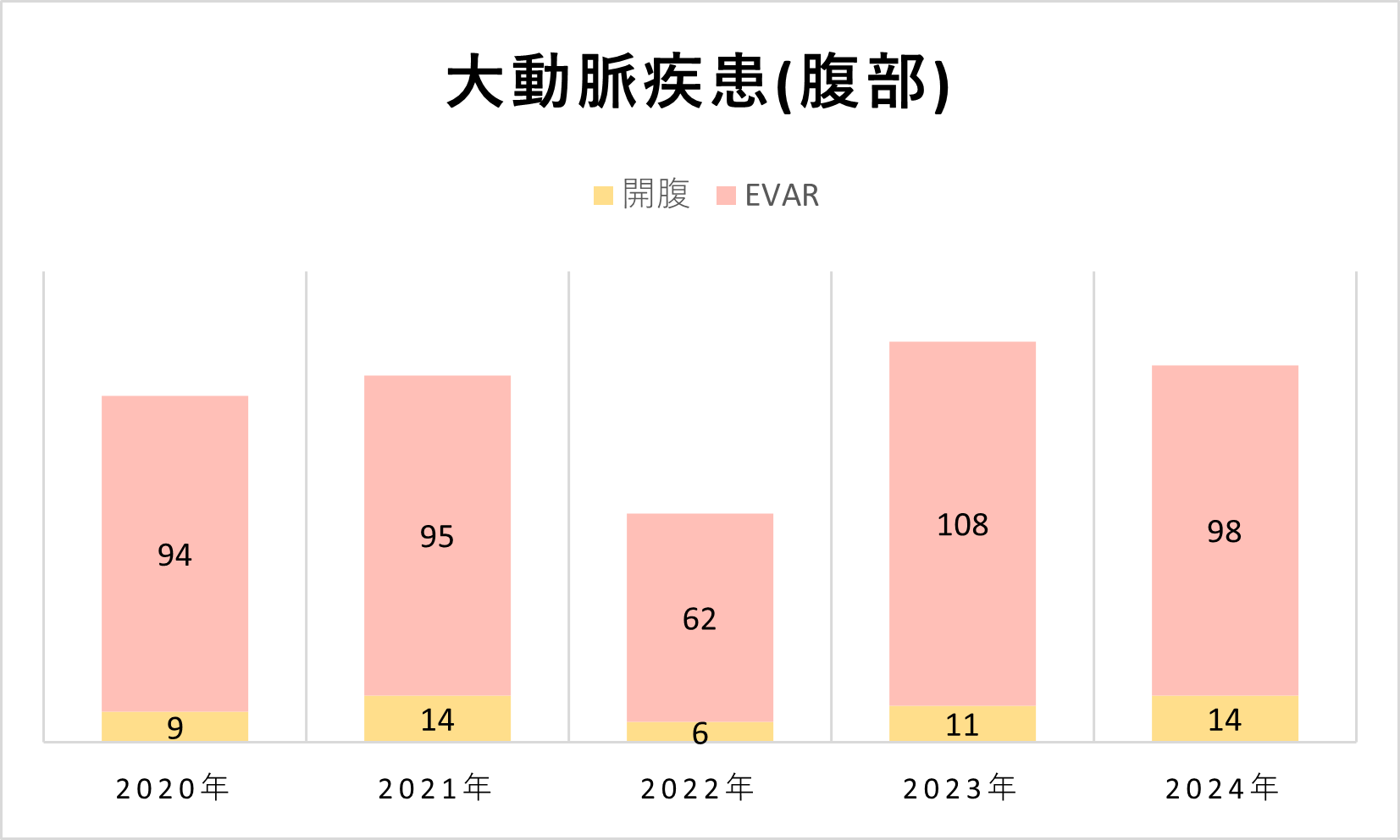 近年大動脈瘤に対するステントグラフト治療の手術件数が大幅に増加しています。